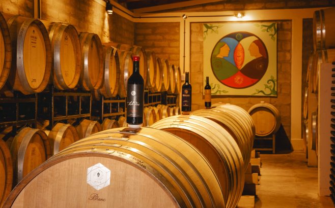• Sala de barricas, cava y estiba.