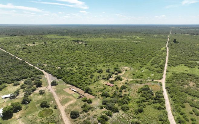 • Se accede por camino de tierra, con una parte enripiada, a 11 km de la ruta provincial N°23. El campo da a los 2 lados del camino de acceso.